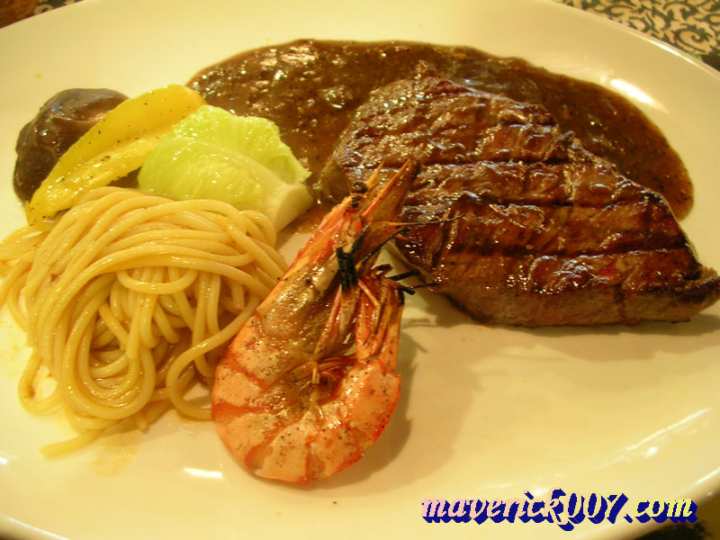 主菜:椒鹽蝦與牛排