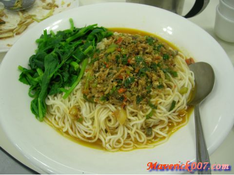蟹黃拌麵:這道不在菜單上,是某人想回味香港天香樓的蟹黃拌麵而要求廚房做的,可惜跟某人想像中的長相差了十萬八千里,麵條的味道太重完完全全壓過蟹黃的滋味。