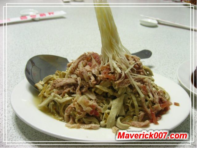 【掐菜鮑絲】原菜為掐菜雞絲(掐菜者豆芽菜掐去頭尾也),馮老闆特別升級為鮑魚絲。果然是廚房有人好吃飯。