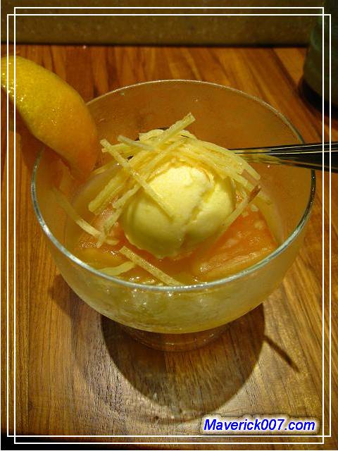 柳橙帶皮冰淇淋 & 葡萄柚果凍 & 柳橙醬 & 可麗餅切絲