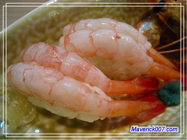 甜蝦握壽司附蝦卵+烤蝦頭