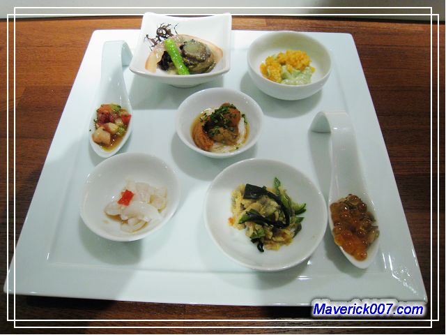 印象中吃到的素材有花枝、海膽山藥麵線、鰻魚、鮭魚卵、章魚、鮑魚煮...等