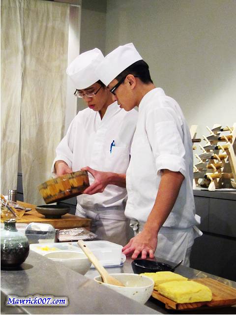 廚師們將醋飯與醬汁至入小木桶拌勻